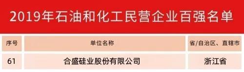 11月29日,2019中國(guó)石油和化工民營(yíng)企業(yè)發(fā)展大會(huì)在北京人民大會(huì)堂召開(kāi),會(huì)上發(fā)布了2019中國(guó)石油和化工民營(yíng)企業(yè)百?gòu)?qiáng)榜單,合盛硅業(yè)股份有限公司位列榜單第61位。